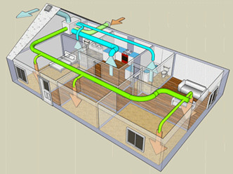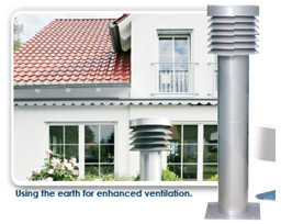 地源換熱器或地-氣換熱(GAHE)使用埋于地下1.5米到2米深的換熱管網來增加新風換熱系統(tǒng)的換熱效率。