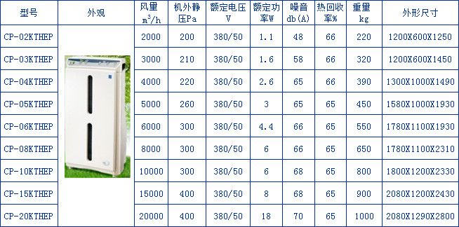 商用全熱交換器規(guī)格參數(shù)