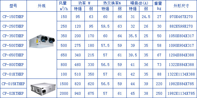 1)CPHEX防凍型全熱交換器,特別適合寒冷的北方。配置進風溫度補償回路,使新風進入全熱交換器的風溫不低于5℃,以防止全熱交換器被凍結。箱體內設置防凍保護。